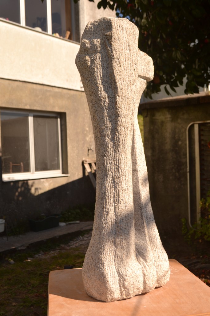Paisajes del alma habla de la relación de lo esencial de nuestro organismo con el espacio que nos rodea y de como nos relacionamos o nos encontramos en él. Granito talla directa. 58x18x15